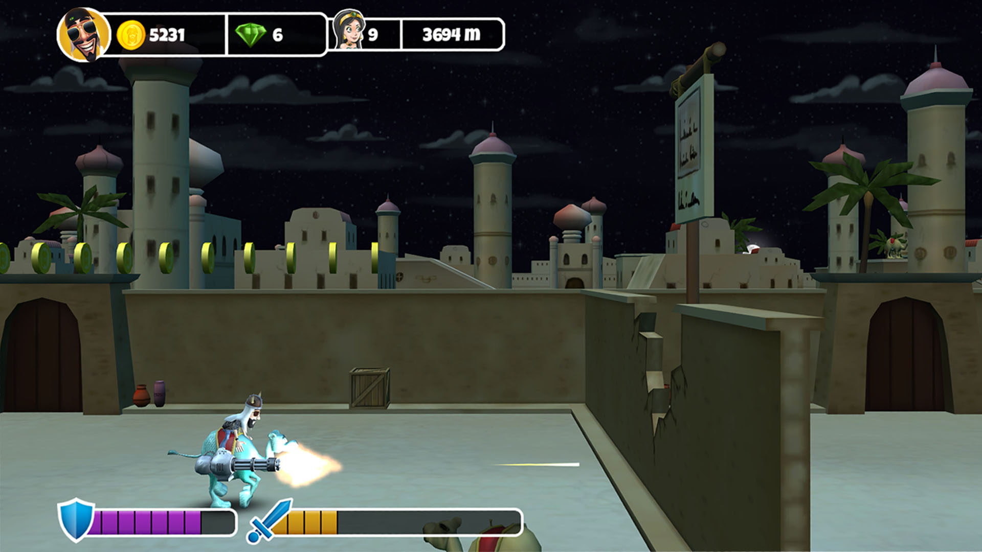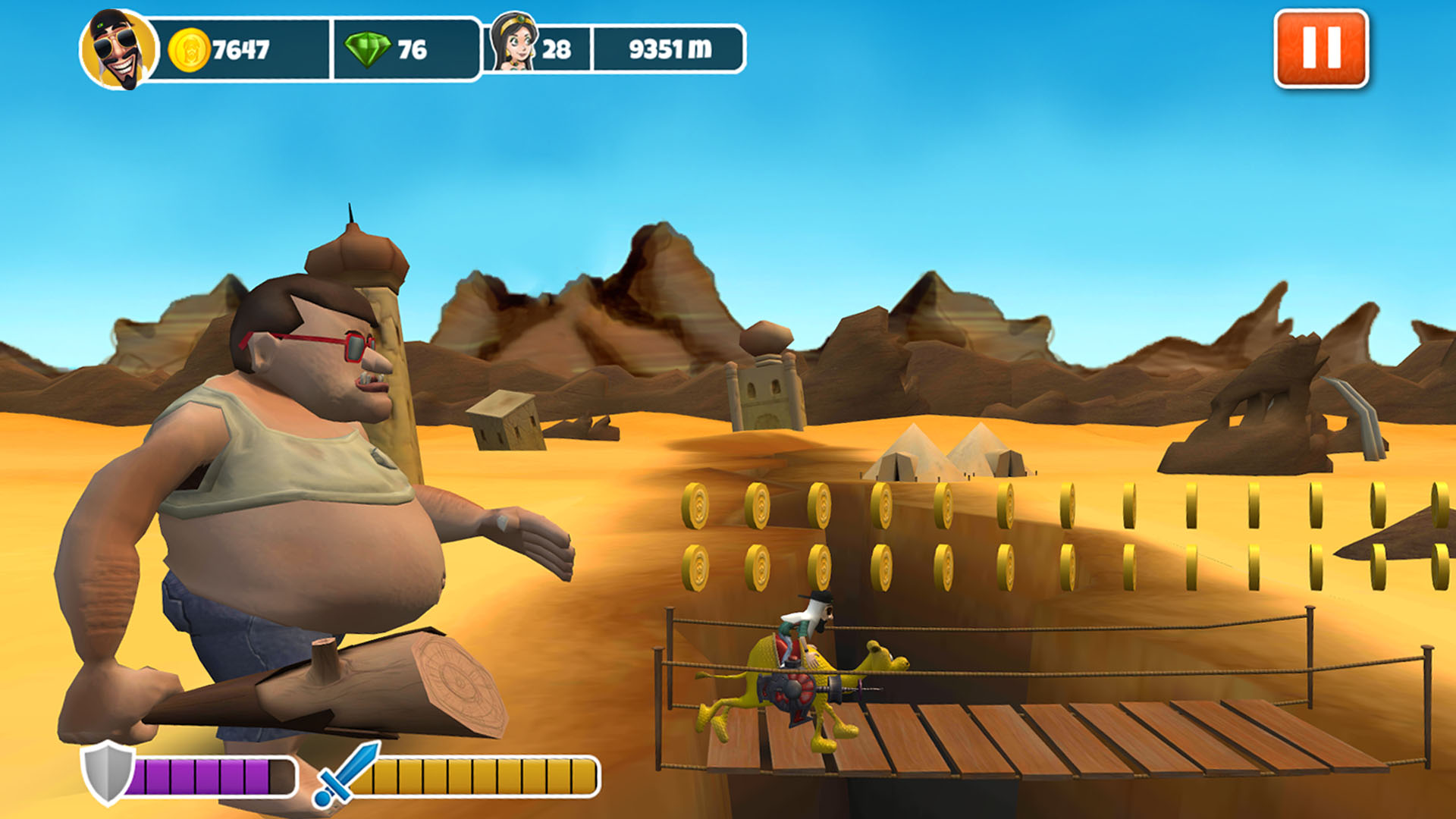 In Mussoumano Game muss der brasilianische Rapper und Youtuber Mussa seine Fans retten, die von Hatern entführt wurden, während er ein Videospiel spielte. Begleite Mussa in diesem endlosen Lauf. Viele Hindernisse werden auf dem Weg liegen, aber unser Rapper hat die Hilfe von speziellen Gegenständen und Transportmitteln wie dem gepanzerten Kamel, einer düsenbetriebenen Kibbe, einem Hoverboard, das von einem bekannten Film inspiriert sein könnte, einem feuerspeienden Drachen und vielem mehr. Die Saga des Rappers geht über das Dorf hinaus, durchquert die brütende Wüste, du stellst dich den Hatern, überwindest den Sandsturm, erkundest eine dunkle Höhle, bis Mussa zu den Ruinen einer alten Zivilisation gelangt, wo ein gigantischer Troll darauf wartet, denjenigen zu bedrohen, der es wagt, ihn zu stören. Um Mussas Fans zu retten, kannst du das gepanzerte Kamel mit vielen Verbesserungen ausstatten, die du durch das Sammeln von Erfahrung und das Aufleveln des Kamels erhältst. Rüstungen, Spezialfähigkeiten und Waffen machen dein gepanzertes Kamel superstark und lassen es dein Abenteuer besser unterstützen. Die Optik von Mussa kann nach Belieben angepasst werden. Es gibt tausende von Kombinationen von Accessoires wie Brillen, Masken, Helme, T-Shirts und Outfits, aus denen du wählen kannst. Wähle deine Optik und mach dich bereit, mit einer tollen Optik zu laufen. FEATURES - Spiel mit nur einer einzigen Berührung des Bildschirms - 3D-Grafiken - Transporte - Charakter-Anpassung Genieße das Abenteuer, während Mussa einige improvisierte Reime singt. Beginne jetzt und rette die Fans mit Mussa. Er zählt auf dich!